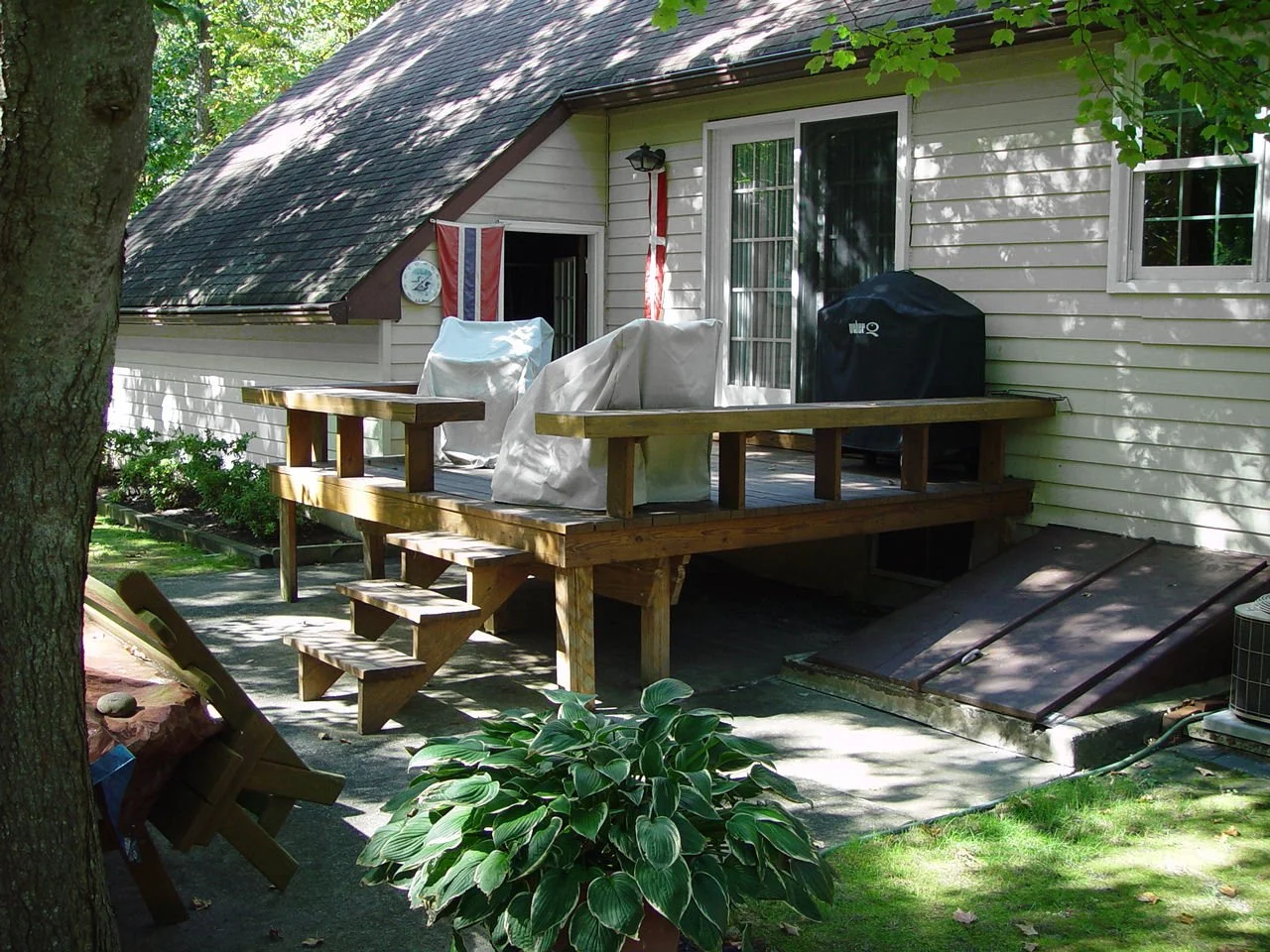 The existing deck had reached the end of its functional and aesthetic lifespan. Constructed with standard wood materials, it showed clear signs of aging and wear that compromised both durability and safety. The lack of proper railings—and the absence of adequate railing along the stairs—created a significant safety hazard for everyday use. The railing system overall was minimal and no longer provided sufficient protection, while the narrow, worn steps further increased risk.